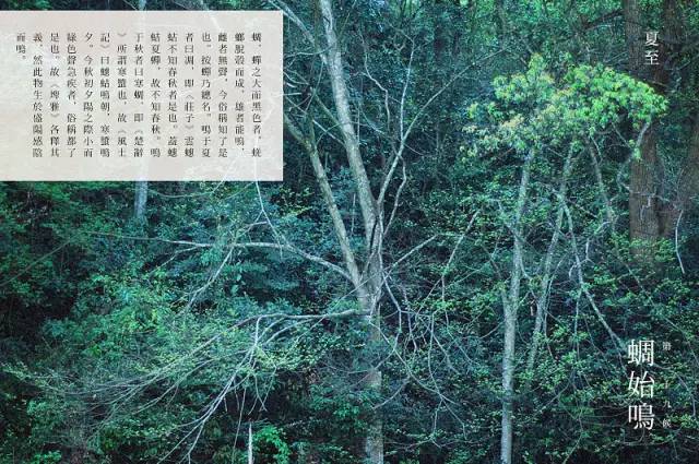 二候,蝉始鸣。 古时楚称蜩(tiáo),秦晋称蝉。 叫声清亮,俗称“知了”。 蝉鸣里树影明灭, 忽觉夏长。